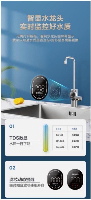 目前市面上的传统净水器处于静止状态时,废水中的溶质会渗透通过RO膜进入纯水端,当净水机再次工作时,第一杯水的TDS值会很高,无法饮用。因此每次使用都需要重新放水净化,这一问题,关系到我们的日常饮水生活。“第一杯水不能喝”的问题,一直是净水行业没有攻克的难题。