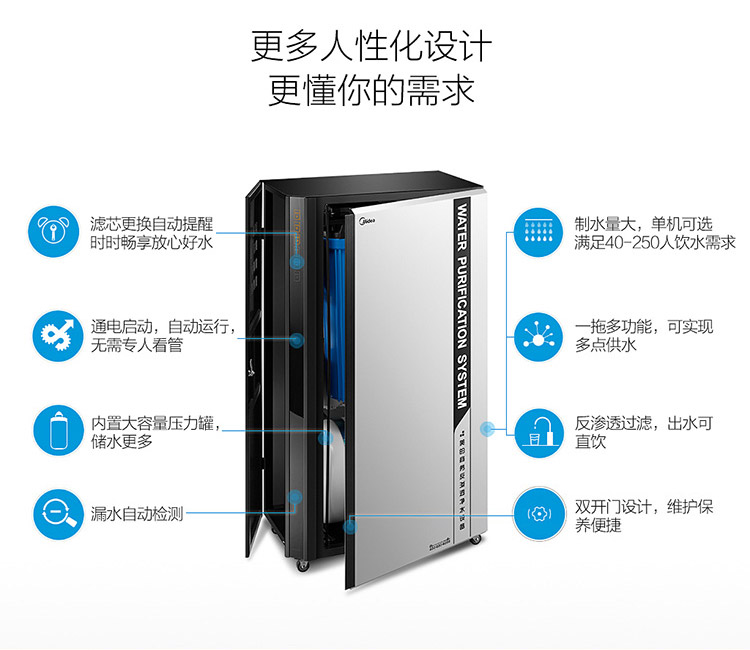 美的 media ZRO1528-800G商务净水机 商用净水器 办公净水 在线咨询 立即购买 美的美的 media ZRO1528-800G商务净水机 商用净水器 办公净水 自动款 技术参数 品牌 美的 电源电压 220V 额定功率 100W 出口 2L/min 尺寸 440*412*230mm 使用人数 50-200人 应用范围 工厂,学校,办公室,医院 产品详情