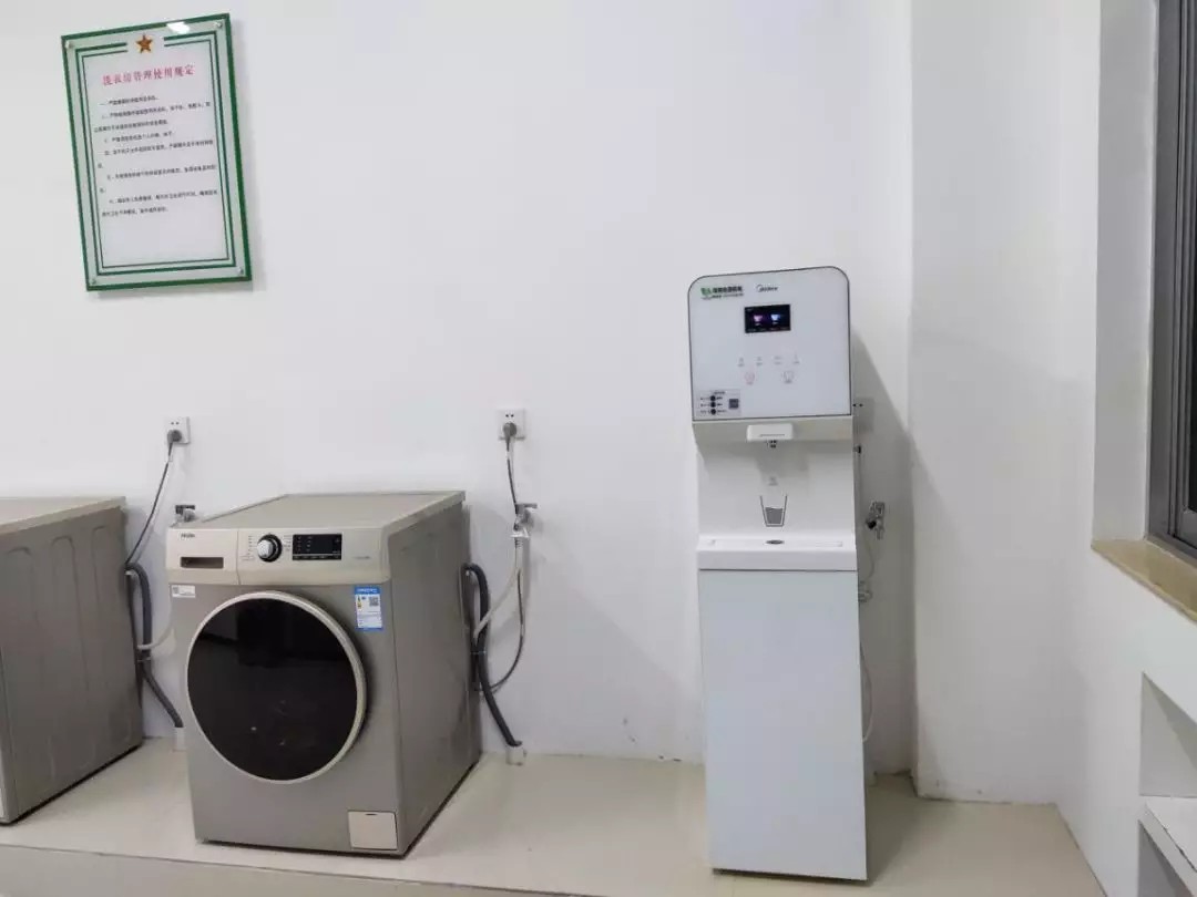 在教学楼的过道,美的商净将美的商用租赁净水器Z80设备进行一体式安装,与建筑环境完美结合,美观大方。在保障校园环境美观的同时,为学生预留足够取水空间,避免高峰期排队拥挤情况发生。